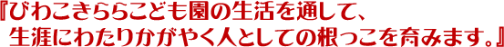 きららっ子は、6年間のこども園の生活をとおして、生涯にわたりかがやく人としての根っこをたくさんおろし、育み、卒園していきます。