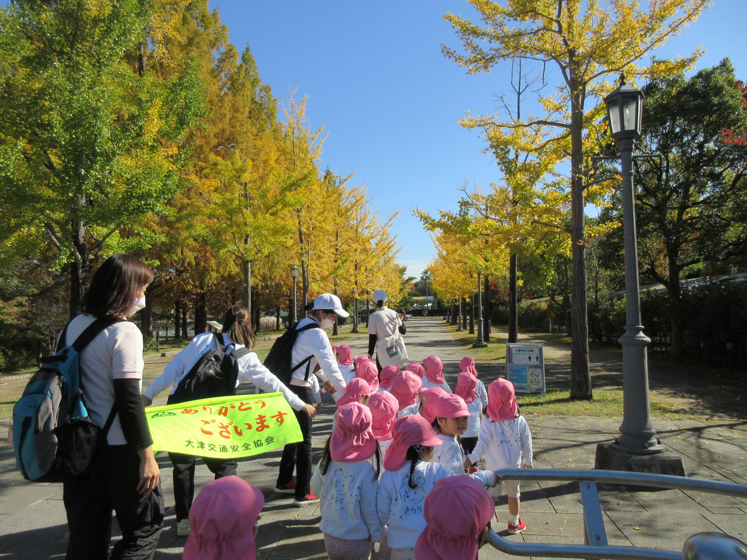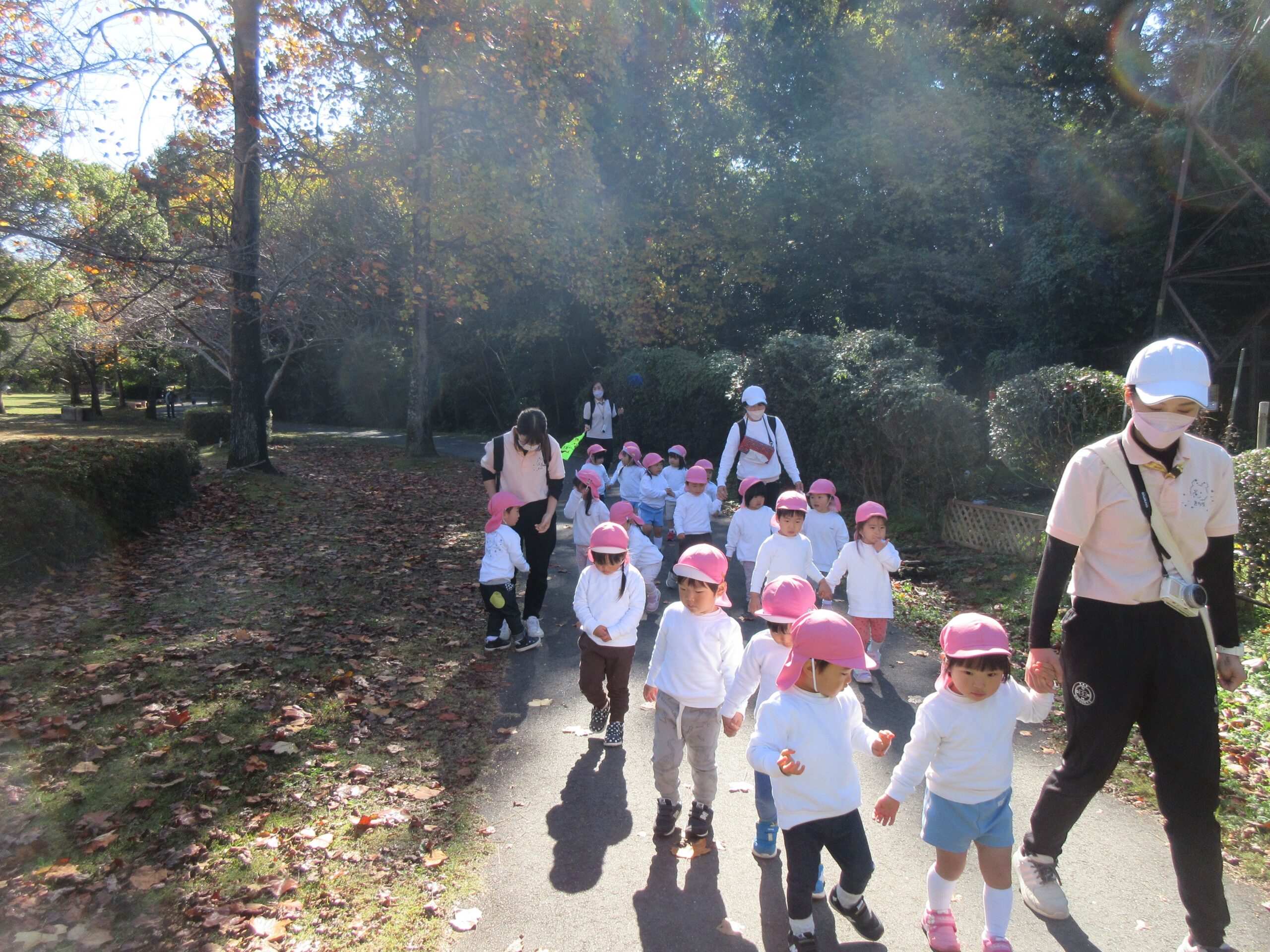 11月7日(月)2歳児がロクハ公園に遠足にいきました! 天気にも恵まれ、秋を感じながら公園内をたくさん歩きました。
