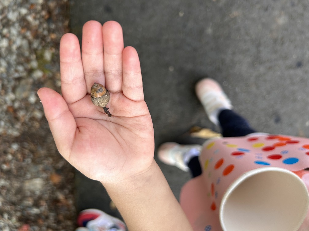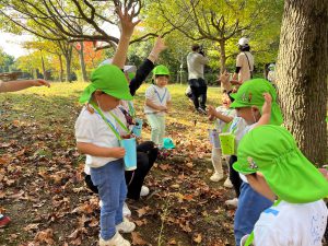 「どんぐりいっぱい!」さっそく、どんぐり拾い大会!