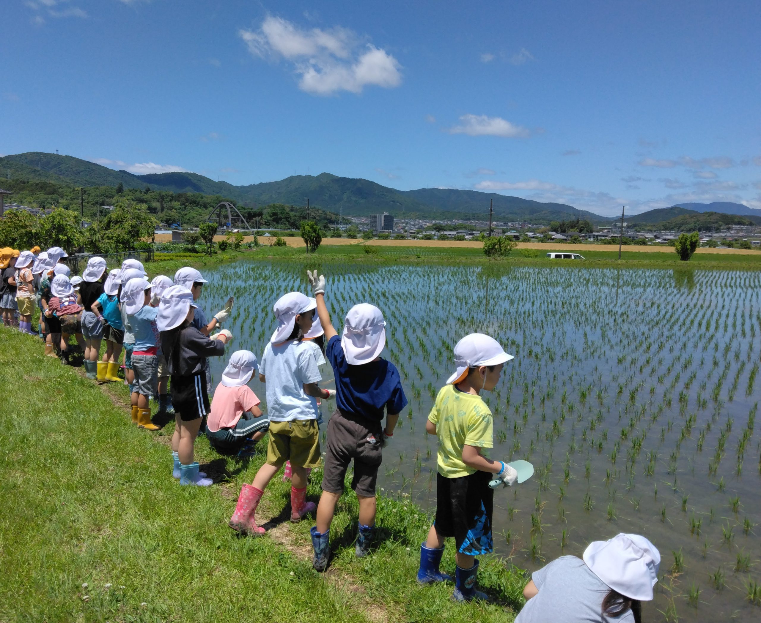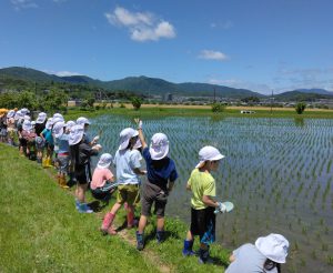 そして、広い田んぼを見学。 お米の苗をいただき、次は園でペットボトルに植えて育てます☆